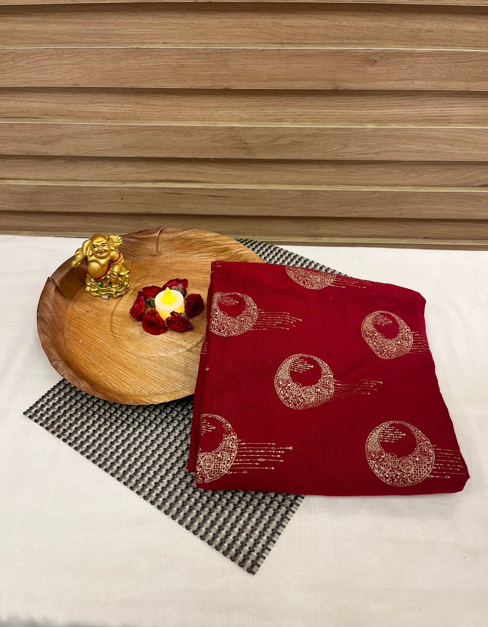 Experience the elegance of Penn_in premium fabrics, crafted to bring both comfort and style to your wardrobe. This {Red Golden Maroon} fabric is designed with a fine weave, soft texture, and lasting durability—making it perfect for sarees, kurtas, lehengas, blouses, and more. At Penn_in, we blend tradition with modern design, giving you fabrics that drape beautifully and feel luxurious on the skin. With multiple color options available, this fabric allows you to design outfits that truly reflect your personality and style.