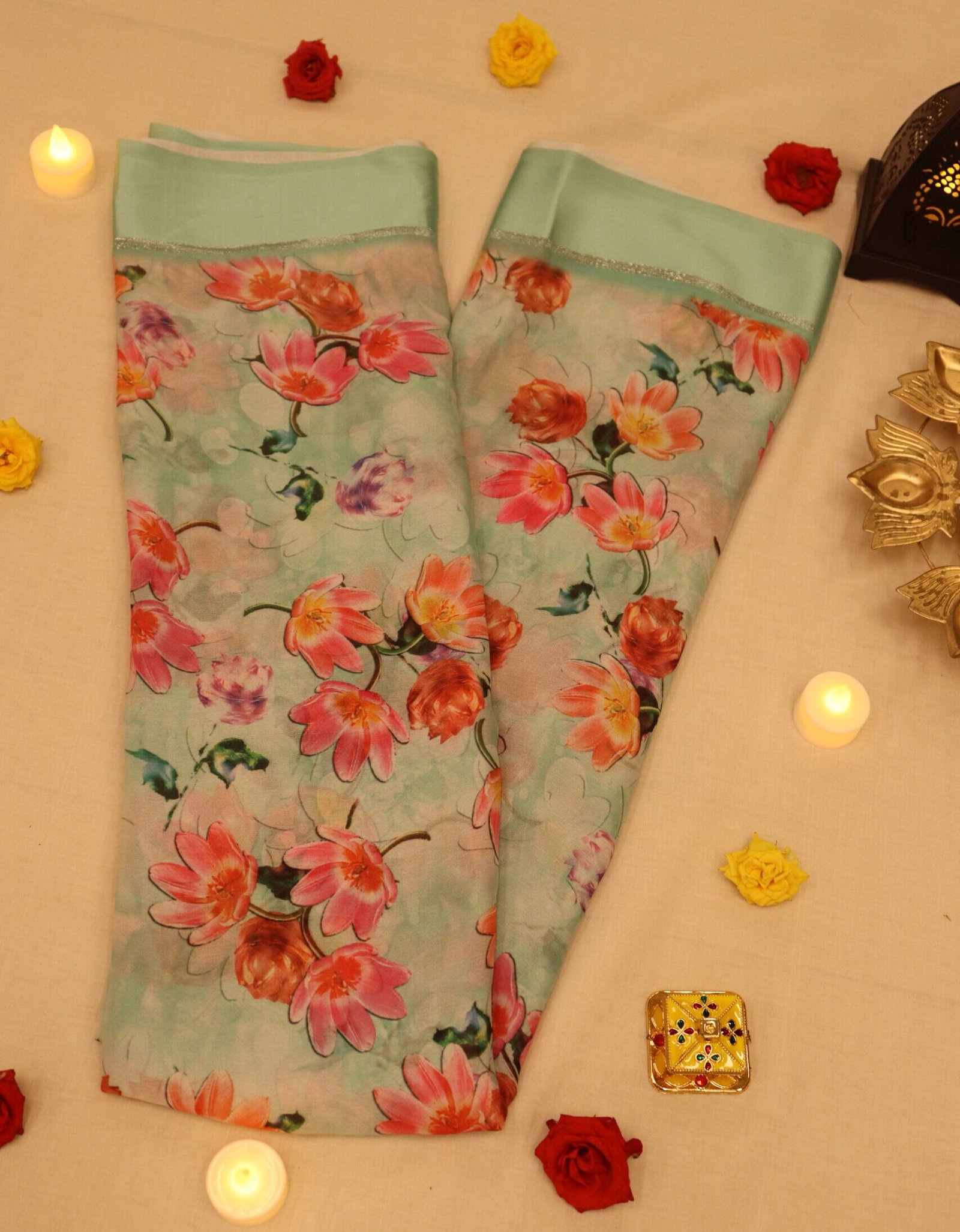• 🌸 Elegant Cyan Shade – A refreshing color that adds charm to both daily wear and festive occasions.